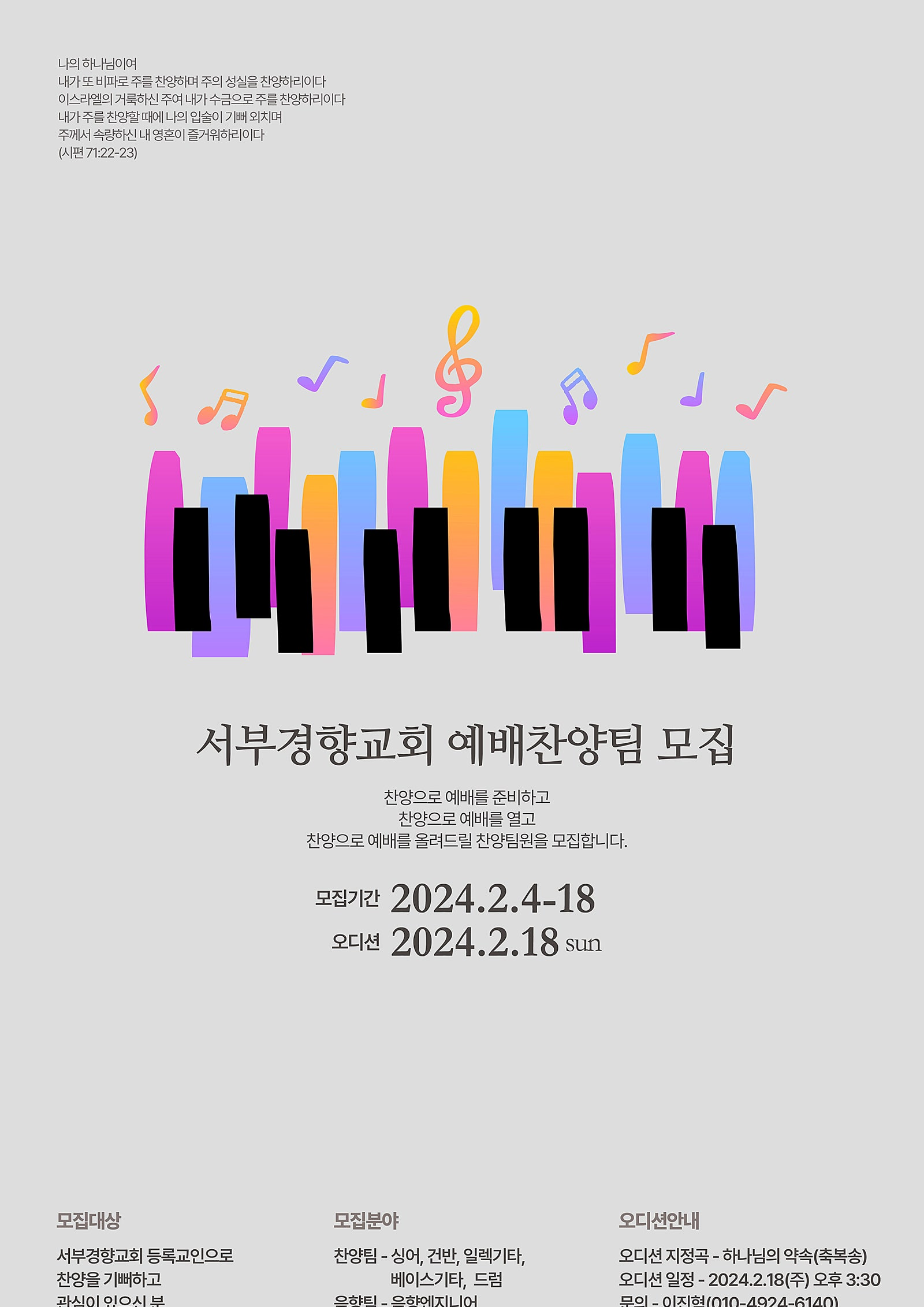 예배찬양팀으로 섬길 성도님을 모집합니다